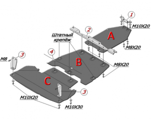 Защита картера BMW 520 E39 1995 - 2002 до 3,0 вкл.Описание:металлическая Артикул: 34.01 |