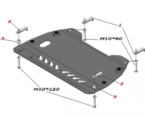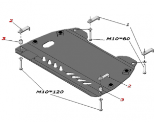 Защита двигателя и КПП Toyota Camry 2011 - 3.5Описание:металлическая Артикул: 24.60 |