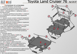 Защита картера КПП и РК Toyota Land Cruiser 76 2010 - 4.5DОписание:металлическая Артикул: 24.57 |